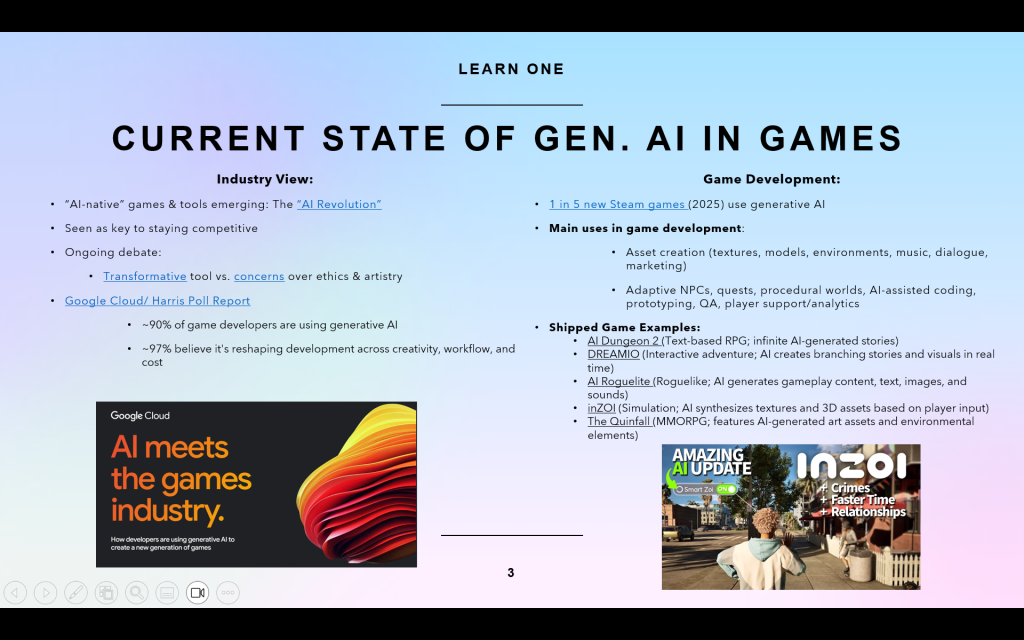 - Understand the current state of generative AI in games