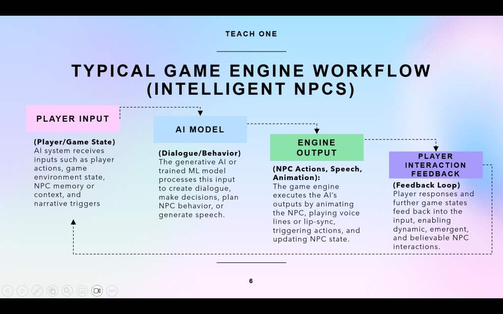 Generative AI in gamespaces is a bit of a wild west at the moment. It is such a young concept (less than 5 years old) that not many studios have yet implemented it into game play. However, since it is so new, there is a massive opportunity of potential for new ideas of how to utilize generative AI in gamespaces to those who wish to explore it. Now is the time!