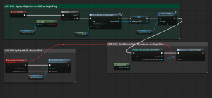 To accomplish this (like I read the professionals do), I implemented an Objective HUD widget created and owned by the PlayerController. The purpose of this was to reinforce the principle that the controller manages the player’s UI layer rather than embedding UI logic inside the character. In other words…no bottle-necking.