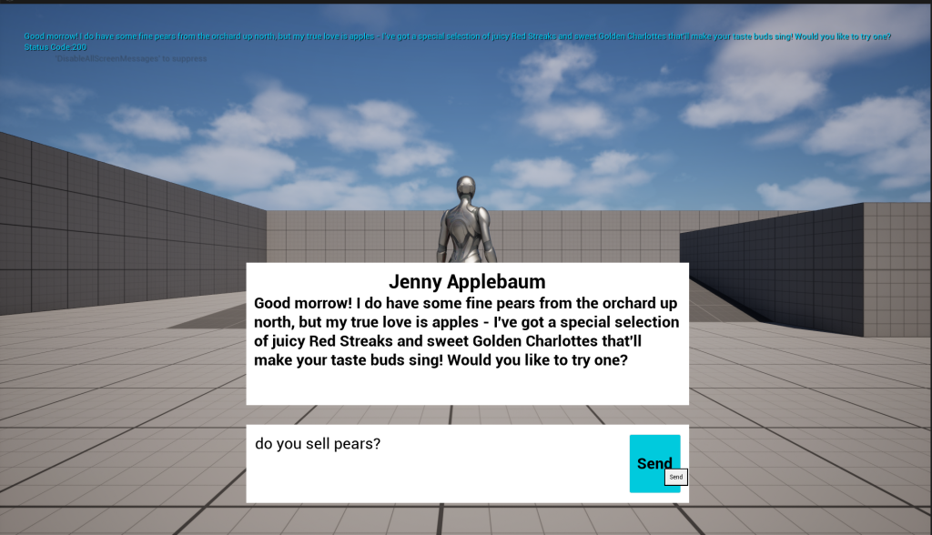 I can’t begin to describe how exciting it’s been developing this Intelligent NPC. I’m on the edge of my seat to see how Jenny will run in the end!